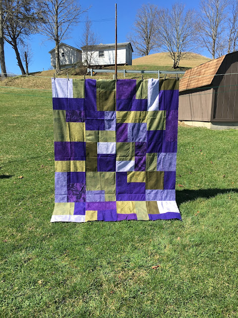 When I spoke with the recipient of the the quilt they advised that they did not want a traditional style quilt....*que screeching tires noises and the sound of a motor vehicle accident. This person (younger) liked a non-traditional, artistic look (meaning not traditional, not symmetrical, not orderly). If you have been keeping up in my blog.....THAT IS NOT ME!!!!! I am orderly, systematic/structured, and traditional. That is not to say that non-traditional is bad, but it is not my specific cup of tea. I embraced this opportunity...because after all, the quilt is not for me. This took me completely out of my wheel house. I was in foreign territory...strange territory, but I began my search on Pinterest for a pattern. I found a couple that I liked and screen-shoted them to the person. It was a hit, so I advised Tish and asked about the patterns. She advised me she could order them, but asked me to wait while she checked on another option. She came got back with me a day or two later and told me about a pattern generator called "Haphazard" created by Liz at Savor Every Stitch. I am so impressed by the talent that created this pattern generator. With this generator you can input colors and dimensions (block and overall) and determine what kind of quilt you will make. As soon as I saw it.....I knew that was it!!!! This was what I would do. I put in my colors, and selected my block size and created several iterations and screen-shoted those off to the recipient. It was a hit...And I knew my direction. A big thanks and shout out to LIZ!!!! You are an innovator!!!!!
